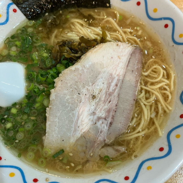 熊本で初めての本格的なラーメン屋。豚骨に鶏ガラをあわせており、豚骨の臭みがないので九州ラーメンが苦手な人でも大丈夫。チャーシューは秘伝のタレに漬けた豚の三枚肉を使用。ニンニクチップが香ばしさと味をグレードアップさせている。