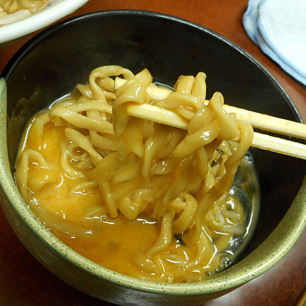 コイツを溶き卵につけて食べると至福。そうやって残りを一気に片付け、スープは半分だけ飲んで終了。そういえば、最近は決まり事のように生卵を発注してはすき焼き二郎にして食べています。まだしばらくは、この作法を続けてゆくことになりそうだと思った一杯でした。