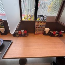 店内は店内は下に浅い棚のある壁向きカウンター9席と外向きカウンター4席、4人掛けテーブル席が1卓2人掛けテーブル席が2卓ありお水は券売機右側の給水機でセルフ(券売機下に荷... 続きを見る